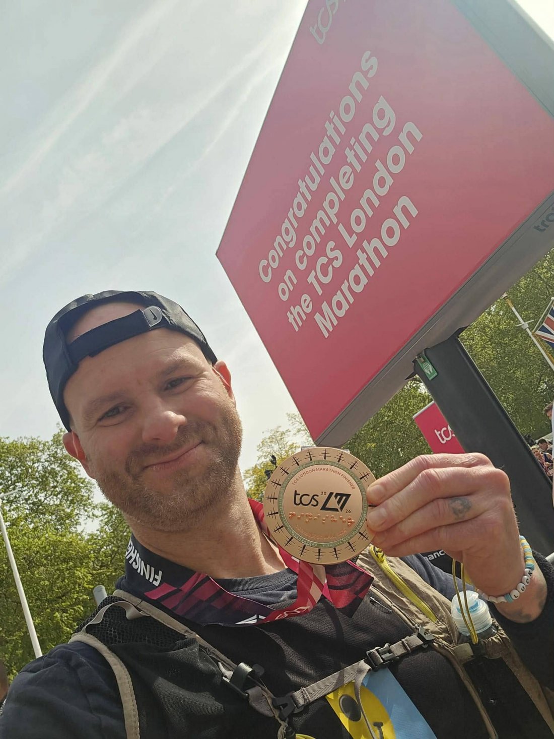 It was smiles all round as Chris celebrated completing yesterday's 2026 London Marathon in a fantastic 4:56:26... despite suffering cramps in both legs at 35km!